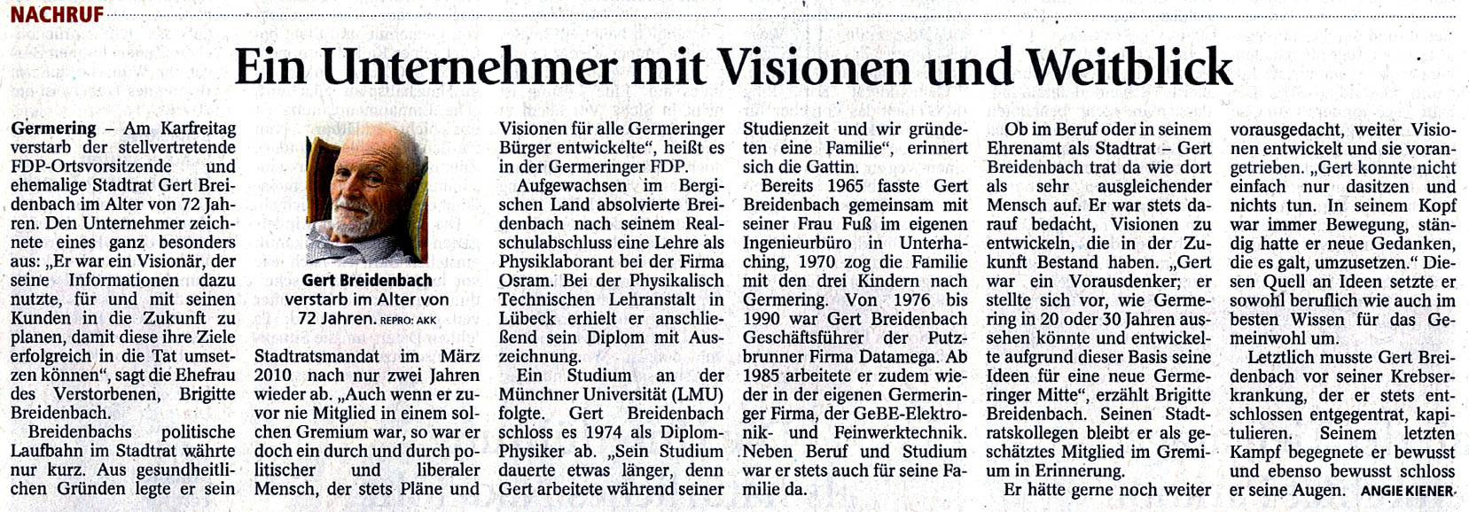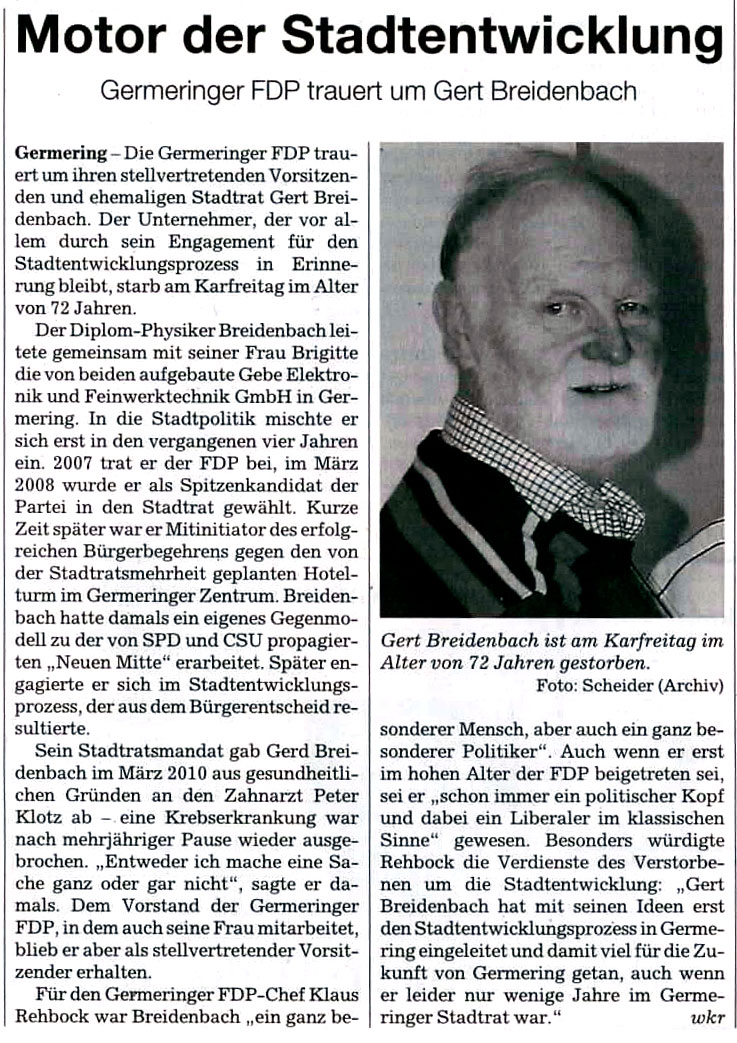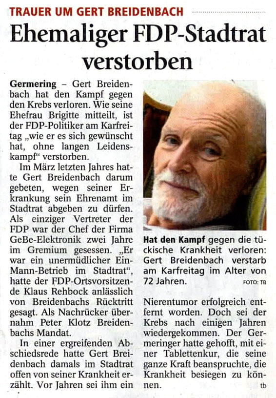 Besonders der Text aus der Trauerrede von Rita Friedrich zu Gerts Beerdigung am 29. April 2011 drückt unser Gefühl aus: